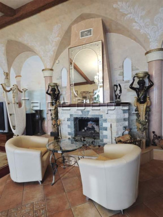 Уникальная планировка и дизайн в просторной гостиной-кухне 90 кв.м. с 5-метровыми мансардными потолками. Дизайн интерьера сделан в замковом стиле с фресками ручной работы и мебелью из массива натурального дерева со встроенной техникой премиум-класса. Отдельная зона с грилем и мощной вытяжкой позволит вамлегко приготовить вкусные шашлыки.