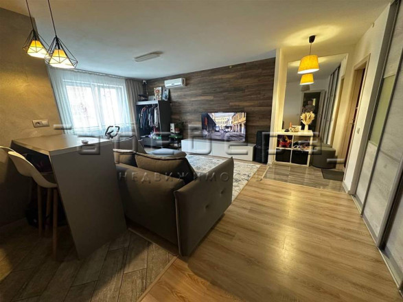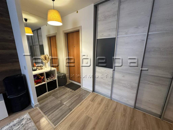 Описание: Предлагаю купить евродвухкомнатную квартиру, на 7 этаже в монолитно-кирпичном 9-этажном доме. Светлая, уютная квартира с хорошим ремонтом, гостиная совмещенная с кухней, что дает ощущение простора. Застекленный балкон, с видом во двор, имеется вместительная гардеробная, где можно разместить не только одежду, но и бытовые вещи и технику. В квартире остается кухонный гарнитур, со встроенной техникой, обеденная группа, тумба под телевизор, сушильная машина и кондиционер.