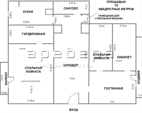 Коридоре выделена лондри (отдельная зона под стиральную машину или другие хозяйственные нужды).