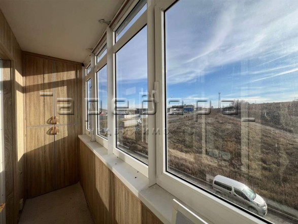 Балкон оборудован деревянными панелями МДФ, увеличенное пространство для хранения благодаря встроенным шкафам