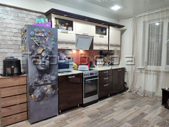 Квартира в хорошем состоянии: кухня-гостиная и отдельная спальня. Санузел раздельный, все в кафеле. Новая сантехника, счётчики на воду. Потолки натяжные с подсветкой, на полу линолеум, на стенах обои. Хорошие деревянные межкомнатные двери. Окна ПВХ. Балкон остеклен, дерево. Металлическая входная дверь. Остаются встроенный шкаф в коридоре, кухонный гарнитур, электроплита.