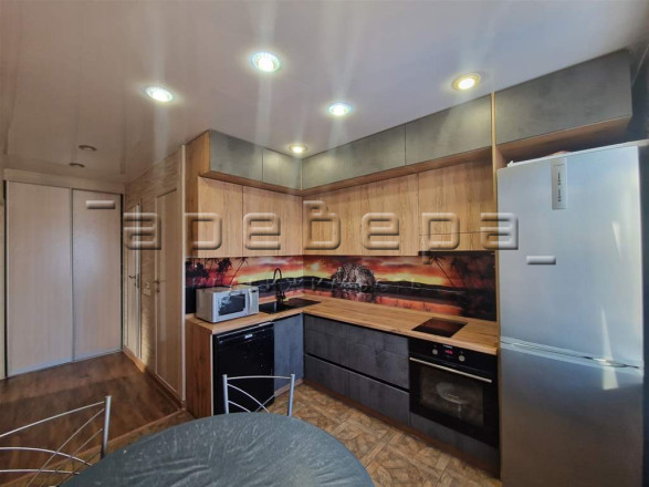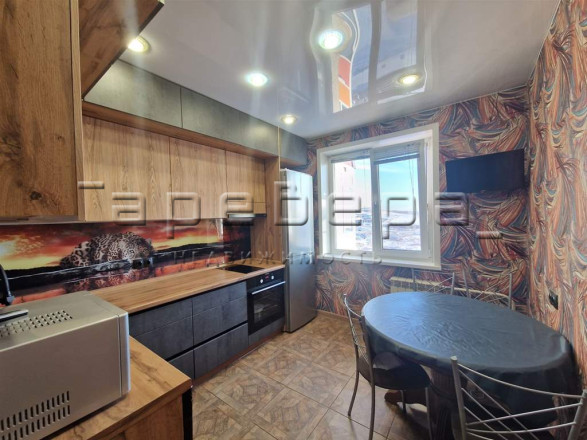 Сама квартира содержится в хорошем санитарном и техническом состоянии: окна ПВХ, балкон застеклен, натяжные потолки, кафель в санузле, кондиционер, хорошие межкомнатные и входная двери, сменили покрытие на полу. В квартиру можно заезжать без вложений на ремонт.