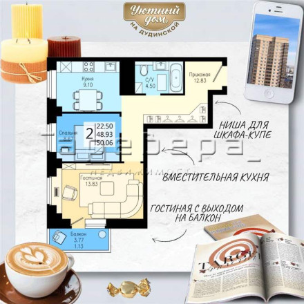 Удобные планировки. Особенный акцент на малых двухкомнатных (49 и 48 кв. м). По стоимости они сравнимы с однокомнатными на престижной Взлетке. Но имеют ряд преимуществ: отдельная небольшая комната, предназначенная по желанию хозяев под личный кабинет, гардеробную, или небольшую детскую.