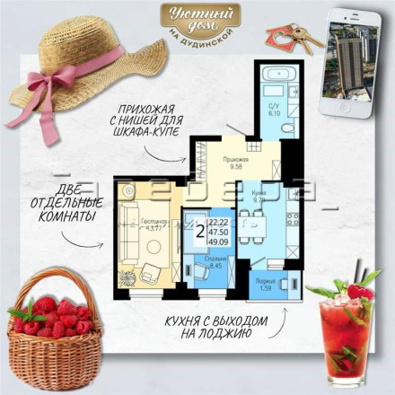 Удобные планировки. Особенный акцент на малых двухкомнатных (49 и 48 кв. м). По стоимости они сравнимы с однокомнатными на престижной Взлетке. Но имеют ряд преимуществ: отдельная небольшая комната, предназначенная по желанию хозяев под личный кабинет, гардеробную, или небольшую детскую.