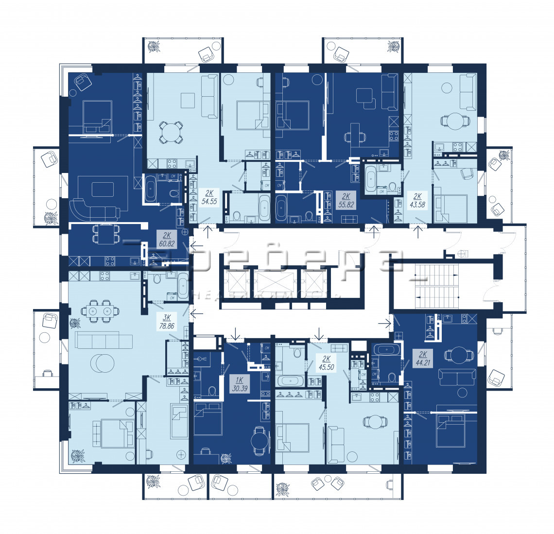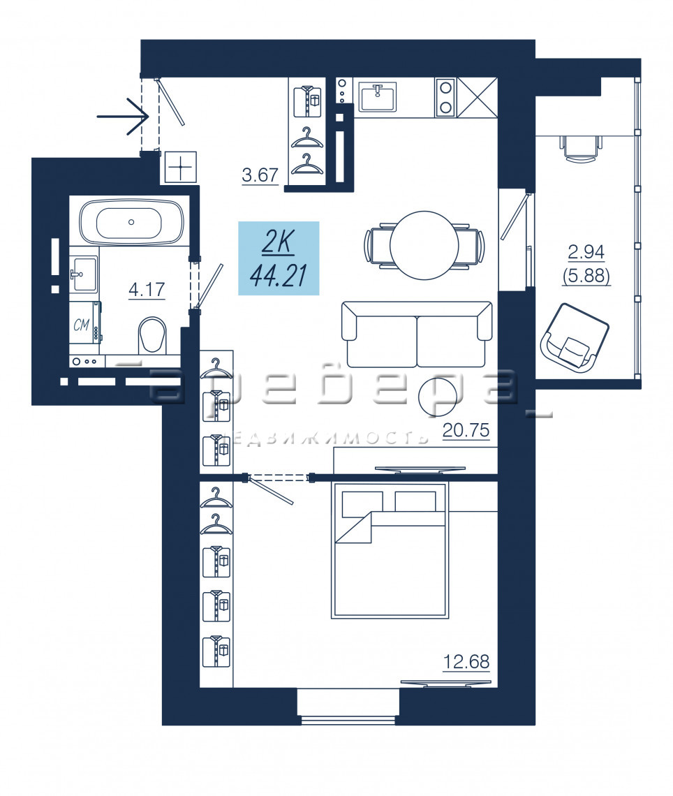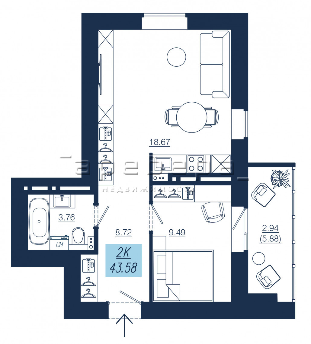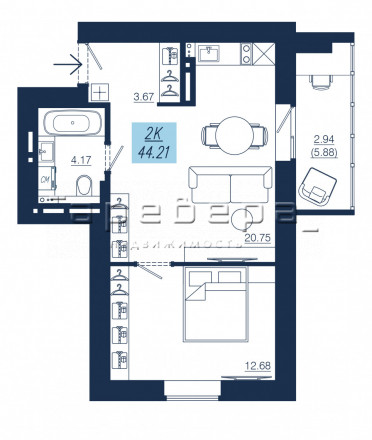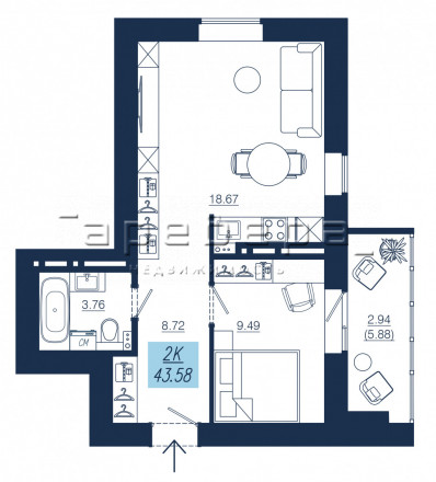 | 2-комн | от 7 294 000 до 10 605 000 | от 43.5 до 60.82 | 14 |