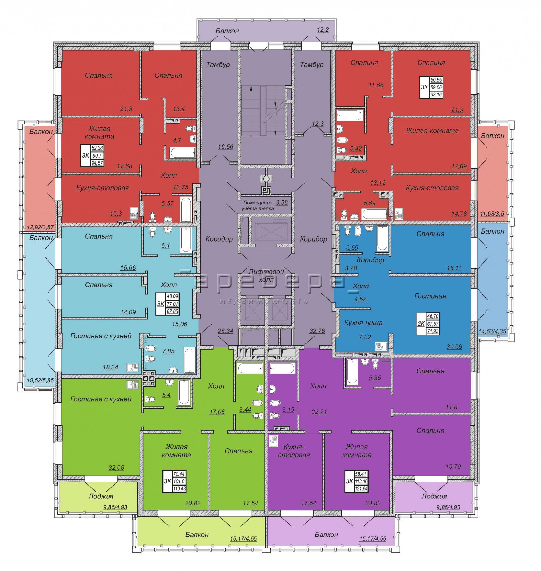 | 3-комн | от 16 938 350 до 18 675 000 | от 113 до 124.6 | 4 |