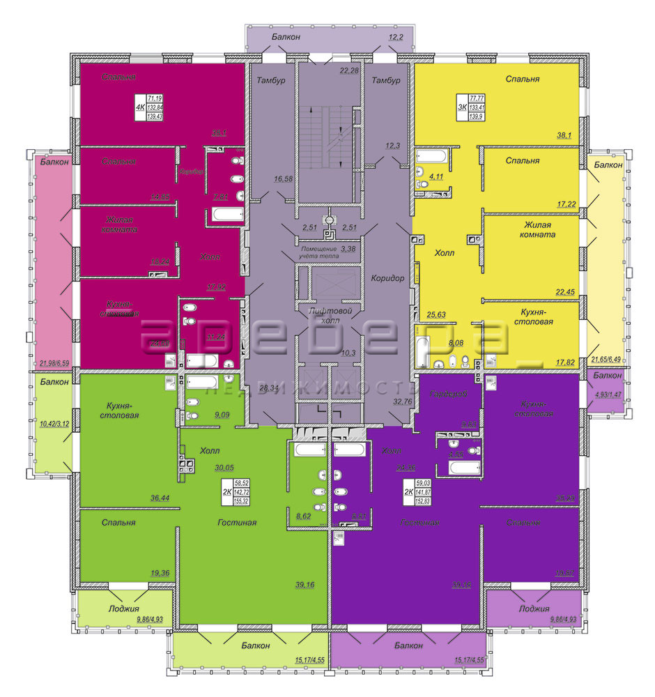 | 4-комн | от 9 500 000 до 9 500 000 | от 76.7 до 76.7 | 1 |