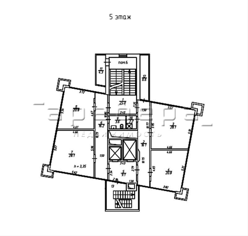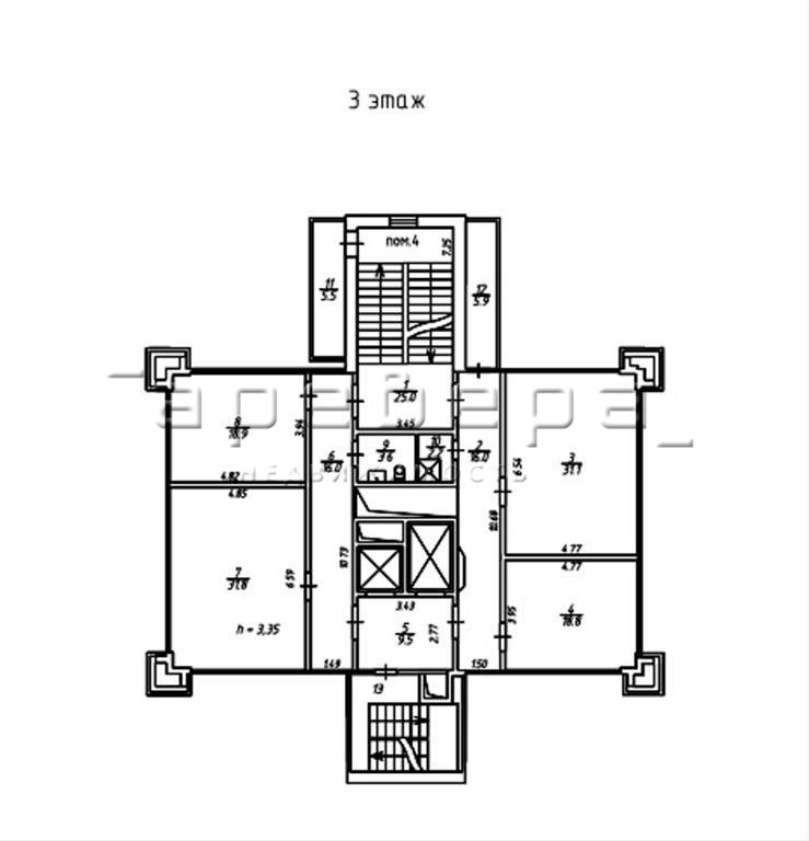 Высота потолков 3,35 м2
