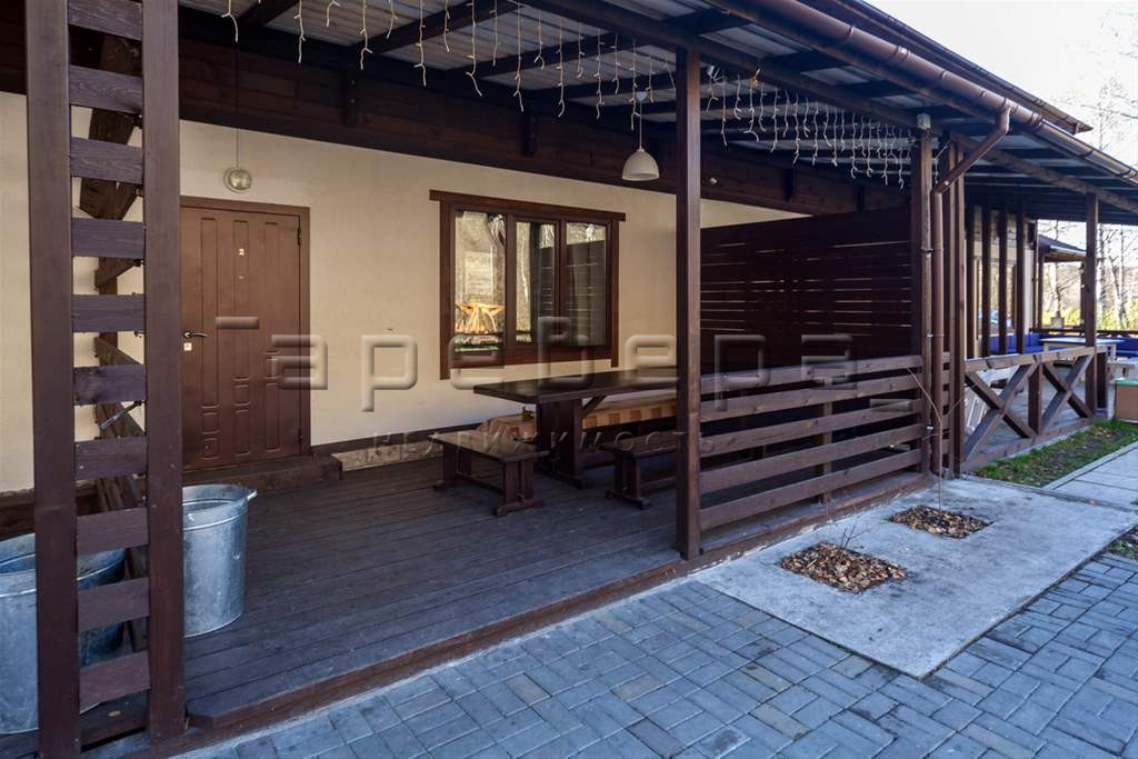 Для отдыха на воздухе есть открытая веранда с мебелью и мангалом.