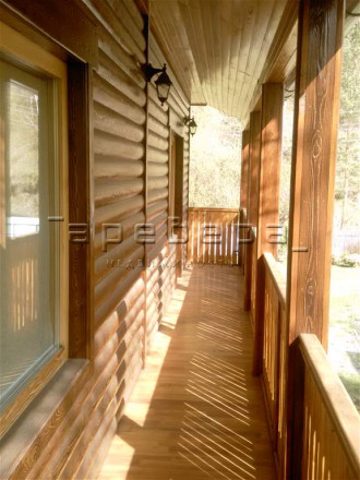Популярность домов, выполненных из дерева, с каждым годом только повышается. И неспроста. Связано это с легкостью и быстротой проведения строительных работ, а также с отличными теплоизоляционными свойствами материала. Двухэтажный дом (брус - листвяк, сосна; утеплен Пеноплекс) 303,6 кв.м. Внутренняя отделка Блок хаус. Камин. Сауна. Конструктивная простота, удобная планировка - для постоянного проживания, спроектирован для участков с высоким горизонтом грунтовых вод.